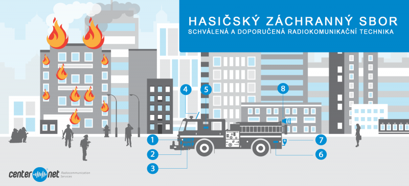 Vozy hasičských záchranných sborů jsou vybaveny celou řadou speciální techniky. K důležitému vybavení každého vozidla hasičského záchranného sboru nepochybně patří i komunikační technika. Do hasičských vozidel jsou instalovány radiostanice, které se využívají pro komunikaci s hlavním dispečinkem, ale také pro komunikaci při zásahu mezi jednotlivými hasiči. Níže můžete vidět několik schválených a doporučených radiokomunikačních komponentů, které se ve většině případů do vozů hasičských záchranných sborů instalují.