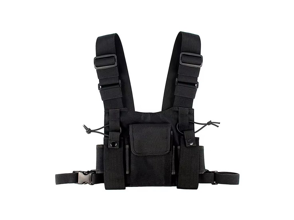 Lehké nylonové hrudní pouzdro P3 s popruhem přes obě ramena určené pro ochranu až dvou ručních radiostanic, uzavíratelná kapsa na suchý zip. Pouzdro je vybaveno nastavitelným popruhem ve vertikálním i horizontálním směru. Radiostanice jsou v pouzdru zajištěna nastavitelným páskem. Ramenní popruhy mají flexibilní pásky pro snadné vedení kabelu drátové komunikační soupravě.